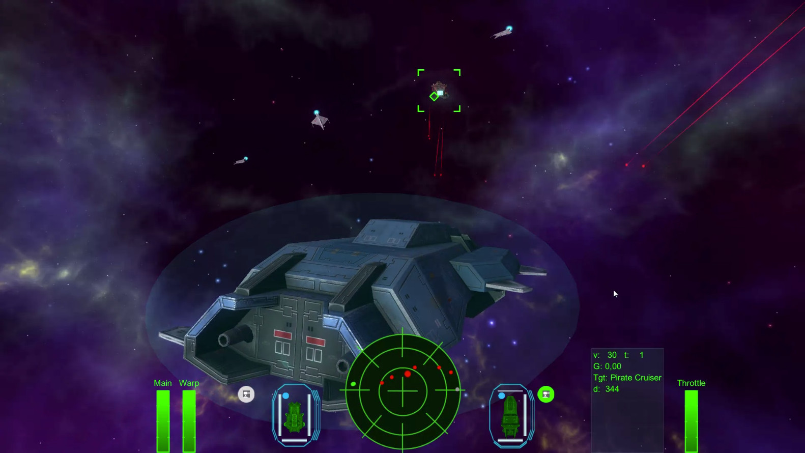 An attempt by DZN team to turn Battlefield 1942 into a space combat simulator. It had two factions with several vehicles each, automated capital ships, turrets manned by AI players, and homing missiles (which relied on a very peculiar physics glitch to work.) There was also a 3D radar rendered by an injected DLL, but we never got it to work correctly. Also, our 3D artist, while very talented, refused to make any textures.