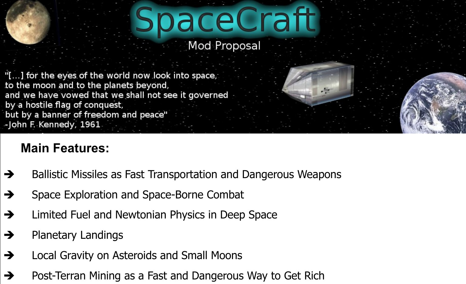 A specification for a realistic space flight modification for Minecraft. It was never made, because no one has that much spare time. The entire thing turned out to be just an exercise in writing a specification.