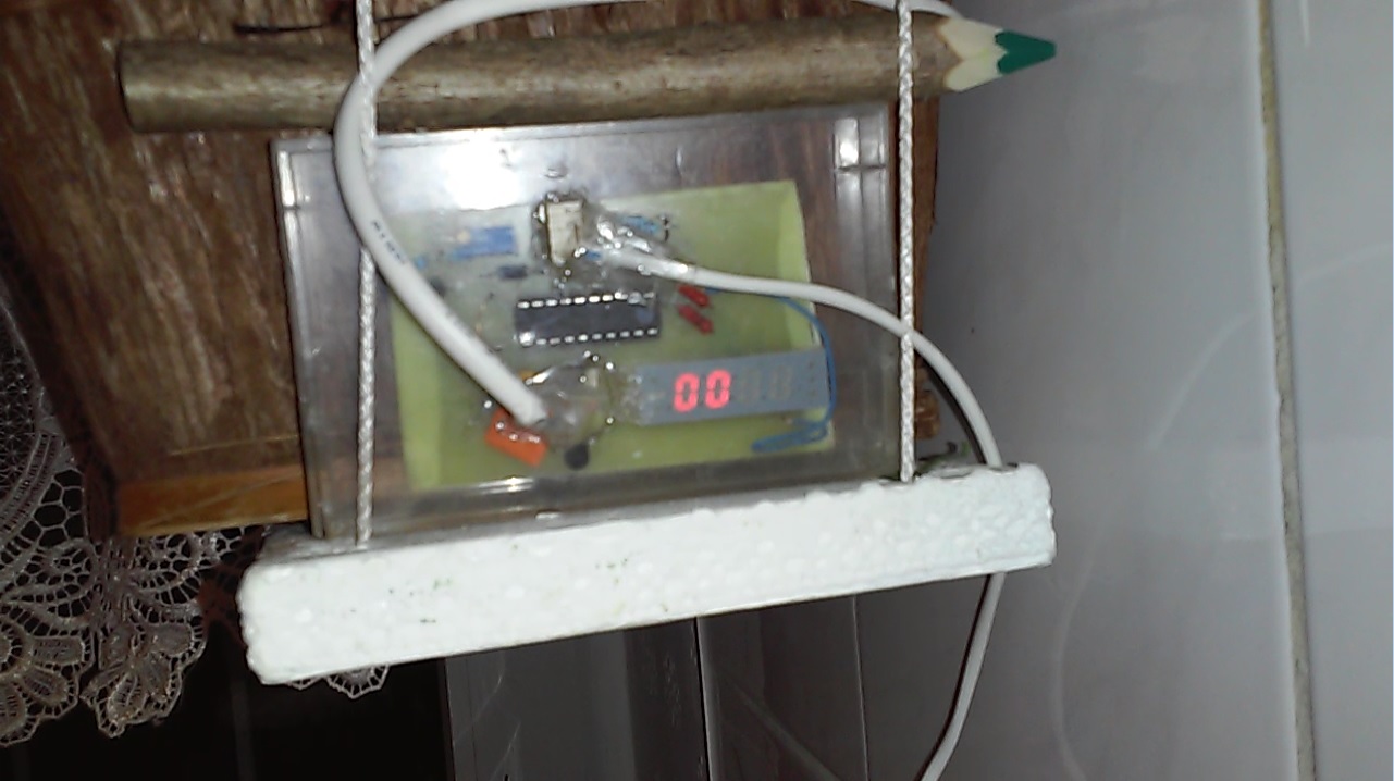 Started as a project for Microprocessor Systems class, but then I've actually built it and hanged it on the kitchen window. Powered by an AT89C2051 microcontroller, which I've programmed in C using an Arduino Uno as a programmer. It reads the temperature from a DS18B20 digital thermometer, and displays it on a small LED display. It still works as of 2019.