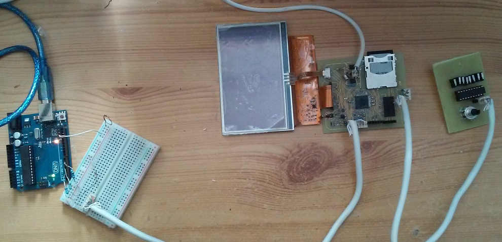A funny little touchscreen device that I made for my thesis project. I believe that the whole idea it represents has been made obsolote by the introduction of cheap WiFi-enabled microcontollers.
